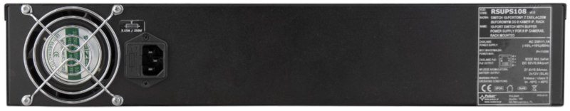 Zarówno RSUPS108 jak i RSUPS108R wyposażone zostały w switche 10 portowe(10/100 Mb/s), z czego 8 portów posiada możliwość zasilenia urządzeń zgodnych ze standardem PoE 802.3af oraz 802.3at(52VDC, do 30W na port). Kolejne dwa porty, typu uplink, dedykowane są do podłączenia rejestratora, komputera, lub np. routera.