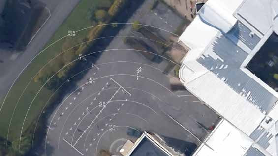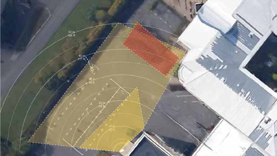 Powyższy rysunek przedstawia scenę monitorowaną przez czujkę radarową, interfejs użytkownika naniesiono na mapę terenu. Kolory naniesiono tylko dla potrzeb poniższego opisu, aby oznaczyć strefy wyzwalaczy i wykluczenia. Typowym zastosowaniem może być rozpoczęcie nagrywania po wykryciu w strefie jasnożółtej i włączenie lampy odstraszającej w ciemnożółtej strefie. Czerwona strefa jest obszarem wykluczonym z detekcji.