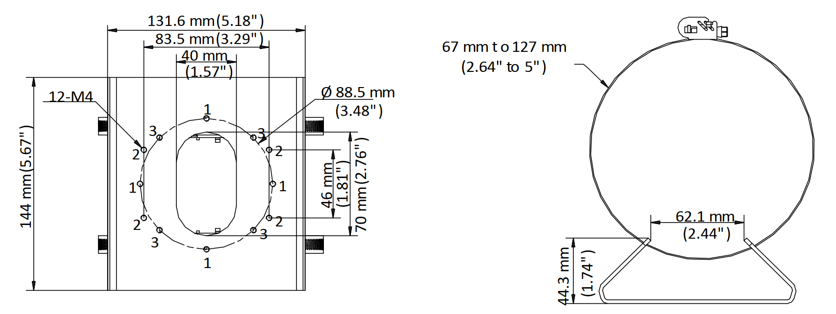 - Materiał: stal nierdzewna (płyta montażowa / zacisk)