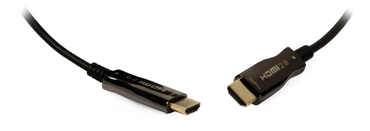 Aktywny kabel światłowodowy służy do podłączania źródła sygnału HDMI do monitora/odbiornika TV oddalonego o maksymalnie 30 m. Przewód obsługuje standard HDMI 2.0 (przepustowość 18 Gb/s). Charakteryzuje się małą średnicą (4,5 mm) i nie wymaga zewnętrznego zasilacza (zasilany jest z portu HDMI).