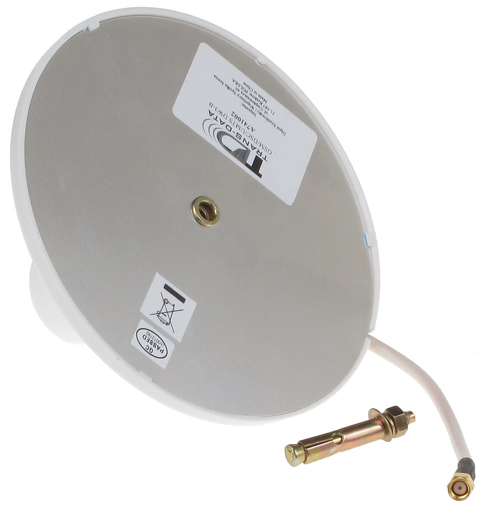 Antena TRANS-DATAGSM/DCS/UMTS DW3-B jest anteną wewnętrzną dookolną przeznaczoną do rozprowadzania wzmacnianego sygnału z repeatera GSM. Antena posiada zysk 3 dBi w paśmie 806-960 oraz 1710-2500 dzięki czemu doskonale wzmacniania sygnał GSM, DCS jak i UMTS.