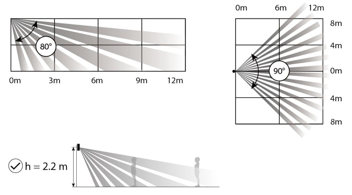 | Zasięg detekcji / kąt wiązki: | 12 m / 90 ° |