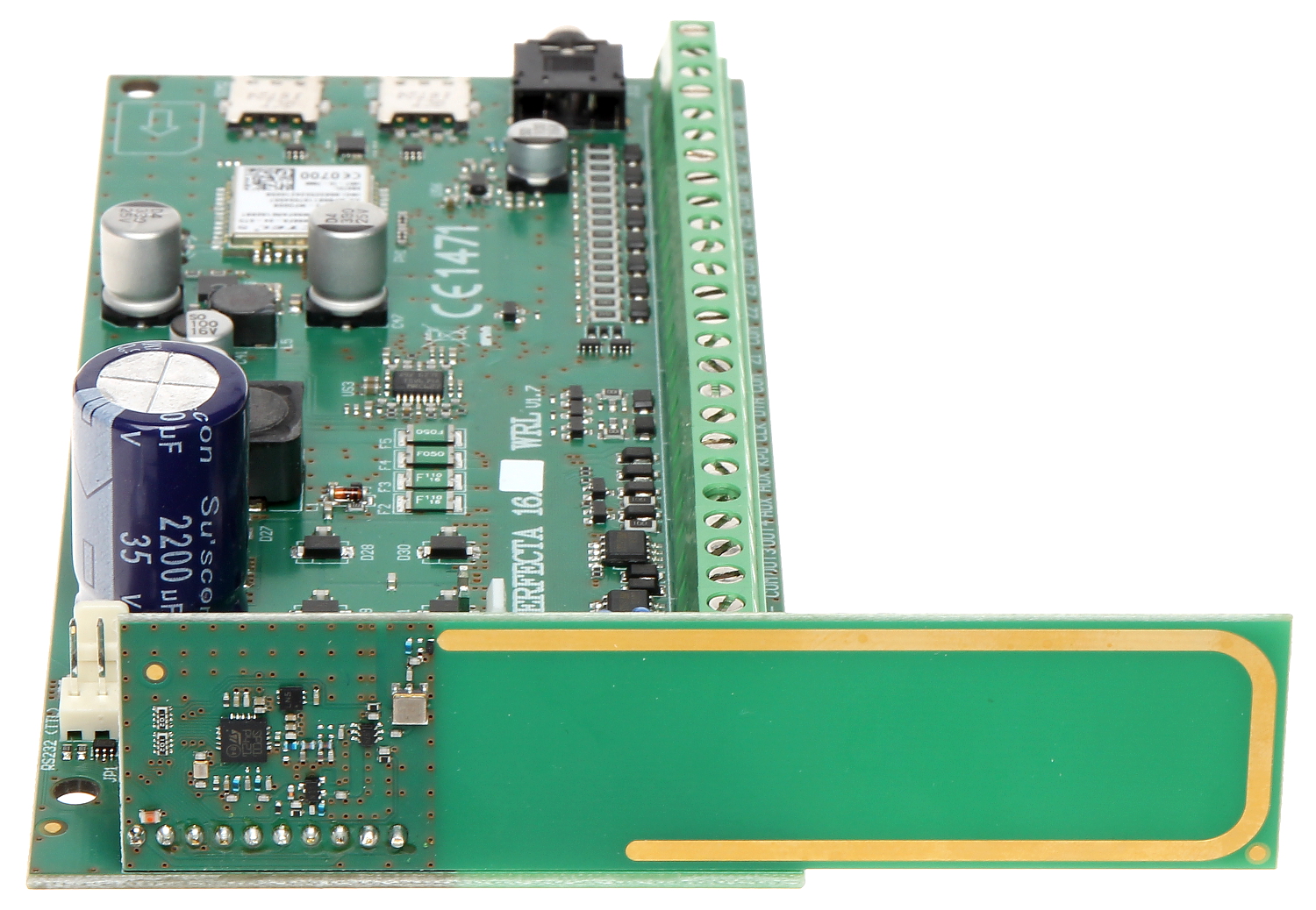 Wbudowany moduł GSM/GPRS daje szerokie możliwości: umożliwia współpracę z aplikacją mobilną, z obsługą wiadomości PUSH, zdalną konfigurację z użyciem programu PERFECTA Soft, monitoring zdarzeń (np. do stacji monitorującej agencji ochrony), powiadamianie głosowe, sterowanie przez SMS oraz weryfikację audio (nasłuch dźwięków z chronionego obiektu). Obsługiwane są dwie karty nano-SIM, co zapewnia ciągłość komunikacji: przy wystąpieniu problemów z zasięgiem pierwszego operatora, automatycznie wybierana jest druga karta.