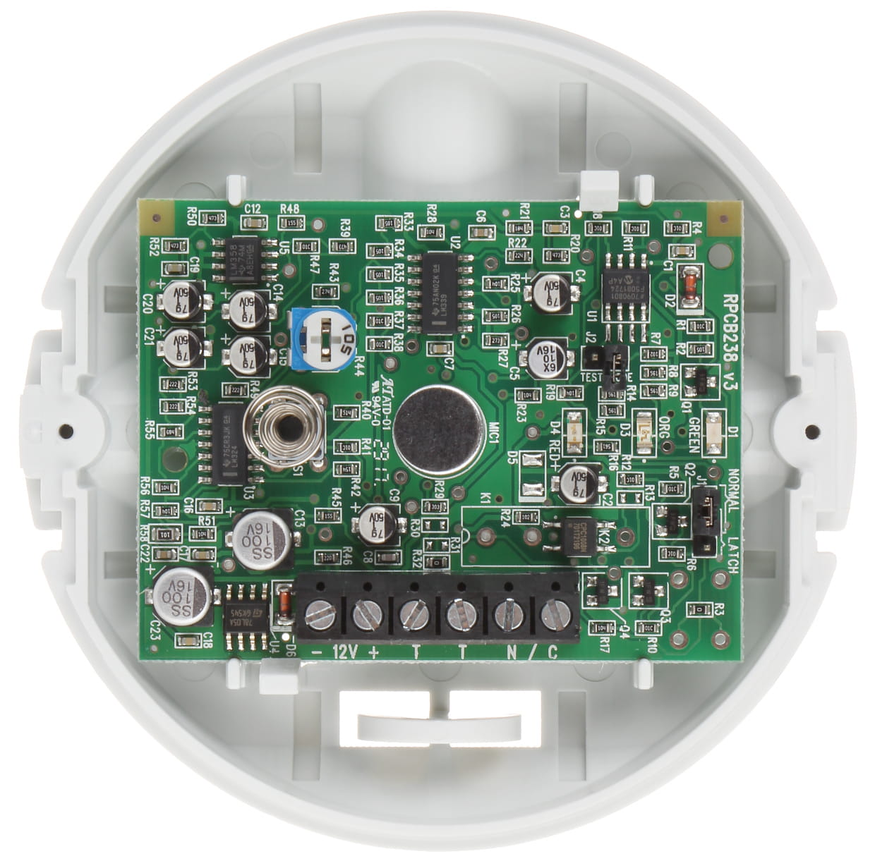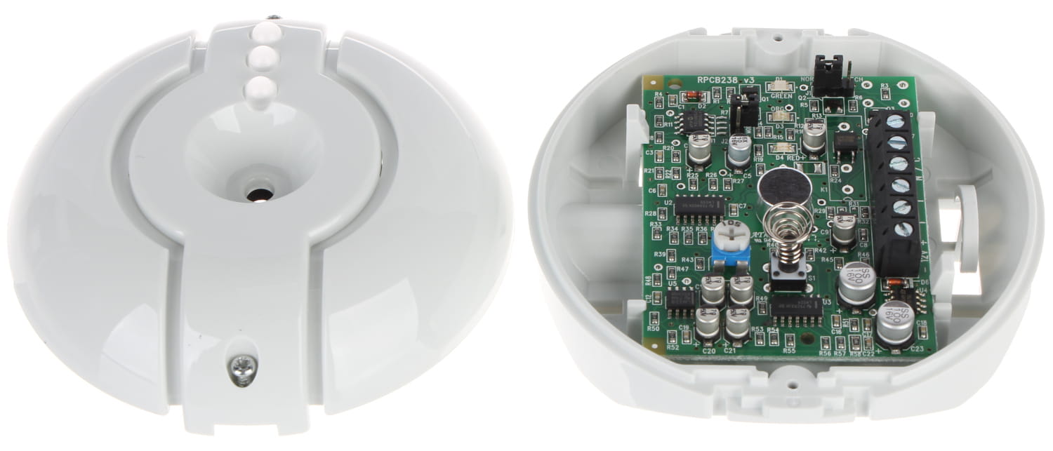 Czujnik sygnalizuje alarm, jeżeli zarejestruje wystąpienie sygnału niskiej częstotliwości (dźwięk uderzenia) oraz sygnału wysokiej częstotliwości (dźwięk tłuczonego szkła). Jest to czujnik dookólny, który można zainstalować w dogodnym miejscu bez konieczności ustawiania go prostopadle do chronionej powierzchni.