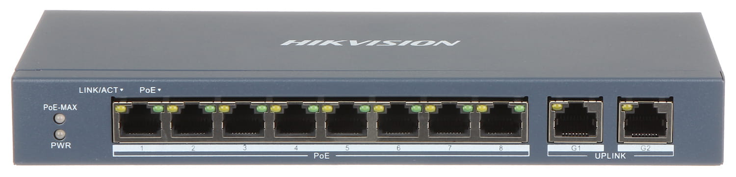 DS-3E0310P-E/M to niezarządzalny switch PoE, marki Hikvision, dedykowany do transmisji LAN w systemach monitoringu IP. Model posiada 8 portów PoE, przeznaczony jest do zastosowań wewnętrznych.