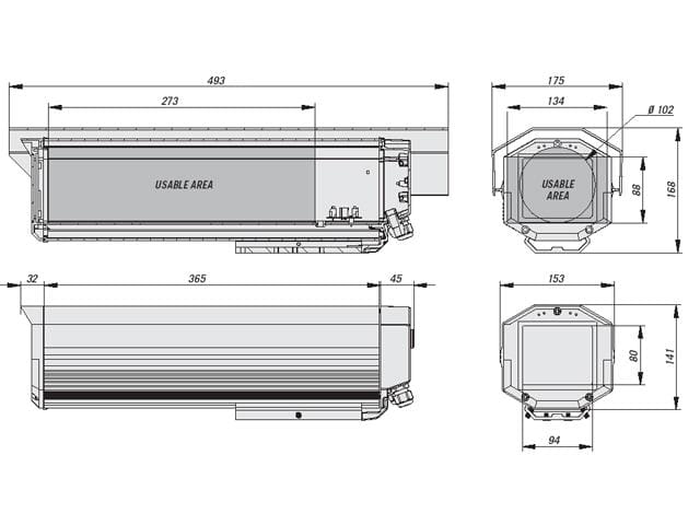 | Przestrzeń dostępna wewnątrz: | 140x90x365 mm |