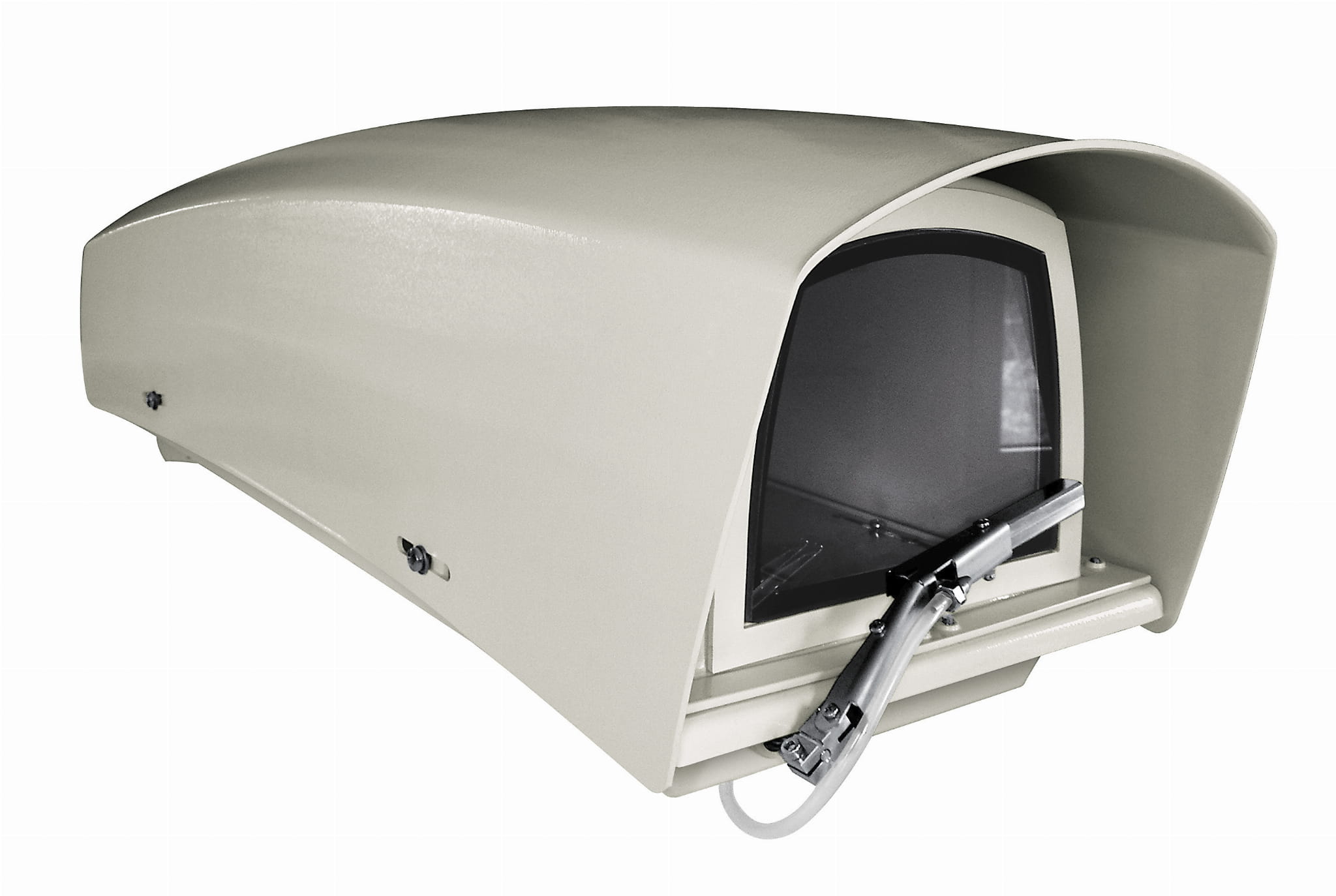 Bardzo duża obudowa do kamer przemysłowych z obiektywami motor-zoom, zapewniająca całkowitą ochronę przed szkodliwym wpływem środowiska, wykonana z aluminium oraz tworzywa ABS. Standardowo wyposażona w wycieraczkę i zasilacz do kamery 12V/1A.