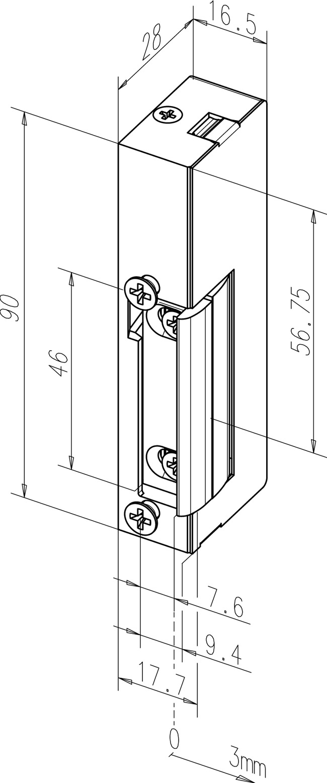 Pozwala na eliminacją luzów pomiędzy językiem elektrozamka a językiem zamka drzwi przez wysunięcie języka elektrozamka w zakresie 0 ~ 3 mm od standardowego położenia.