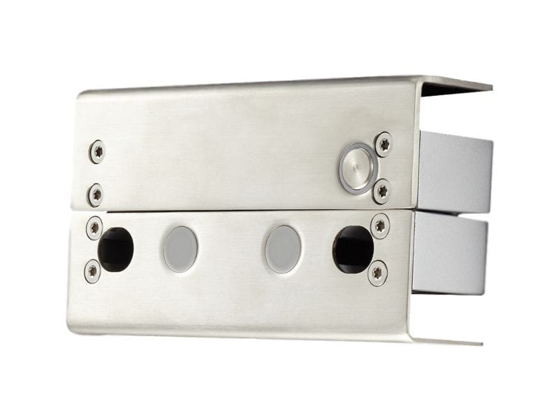 Dodatkowe uchwyty montażowe typu „S”, „U” pozwalają na montaż elektrozamka nawierzchniowo lub zastosowaniu go do zabezpieczenia drzwi szklanych.