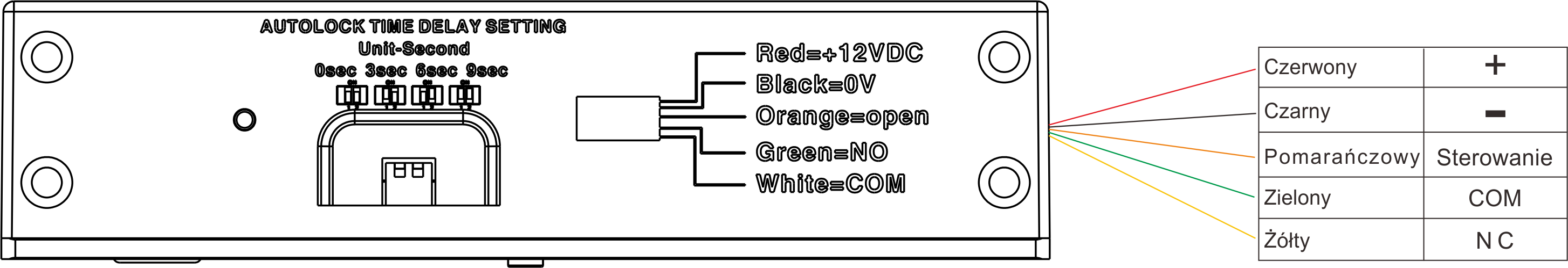 Elektrozamek ma możliwość ustawienia opóźnienia czasowego po którym elektrozamek zarygluje drzwi. Czas ten można ustawić na mikroprzełącznikach na obudowie elektrozamka. Możliwe ustawienia: 0 / 3 / 6 / 9 sekund zwłoki po podaniu sygnału sterującego otwarcie drzwi.