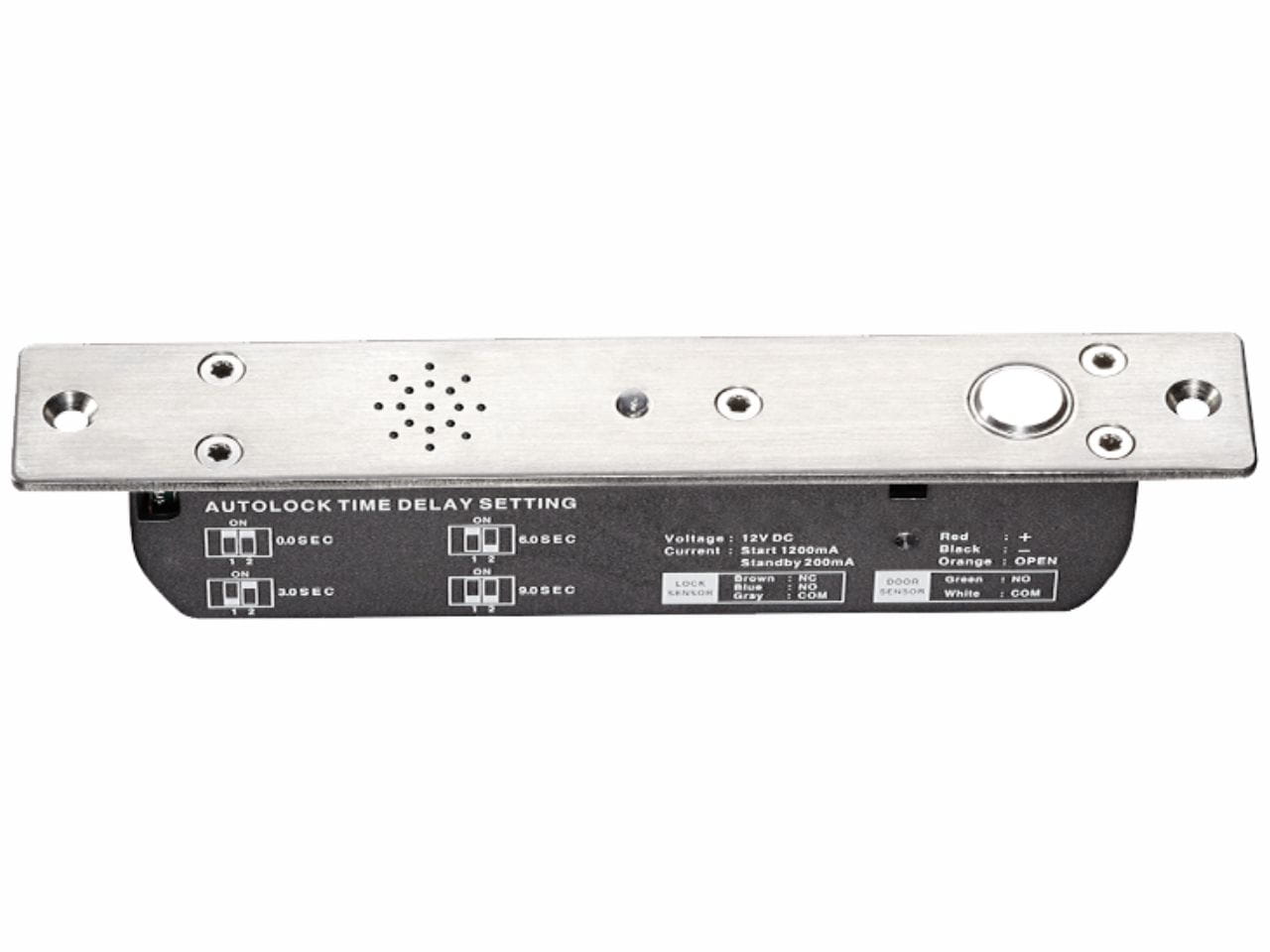 Elektrozamek ma możliwość ustawienia opóźnienia czasowego po którym elektrozamek zarygluje drzwi. Czas ten można ustawić na mikroprzełącznikach na obudowie elektrozamka. Możliwe ustawienia: 0 / 3 / 6 / 9 sekund zwłoki po fizycznym zamknięciu drzwi.