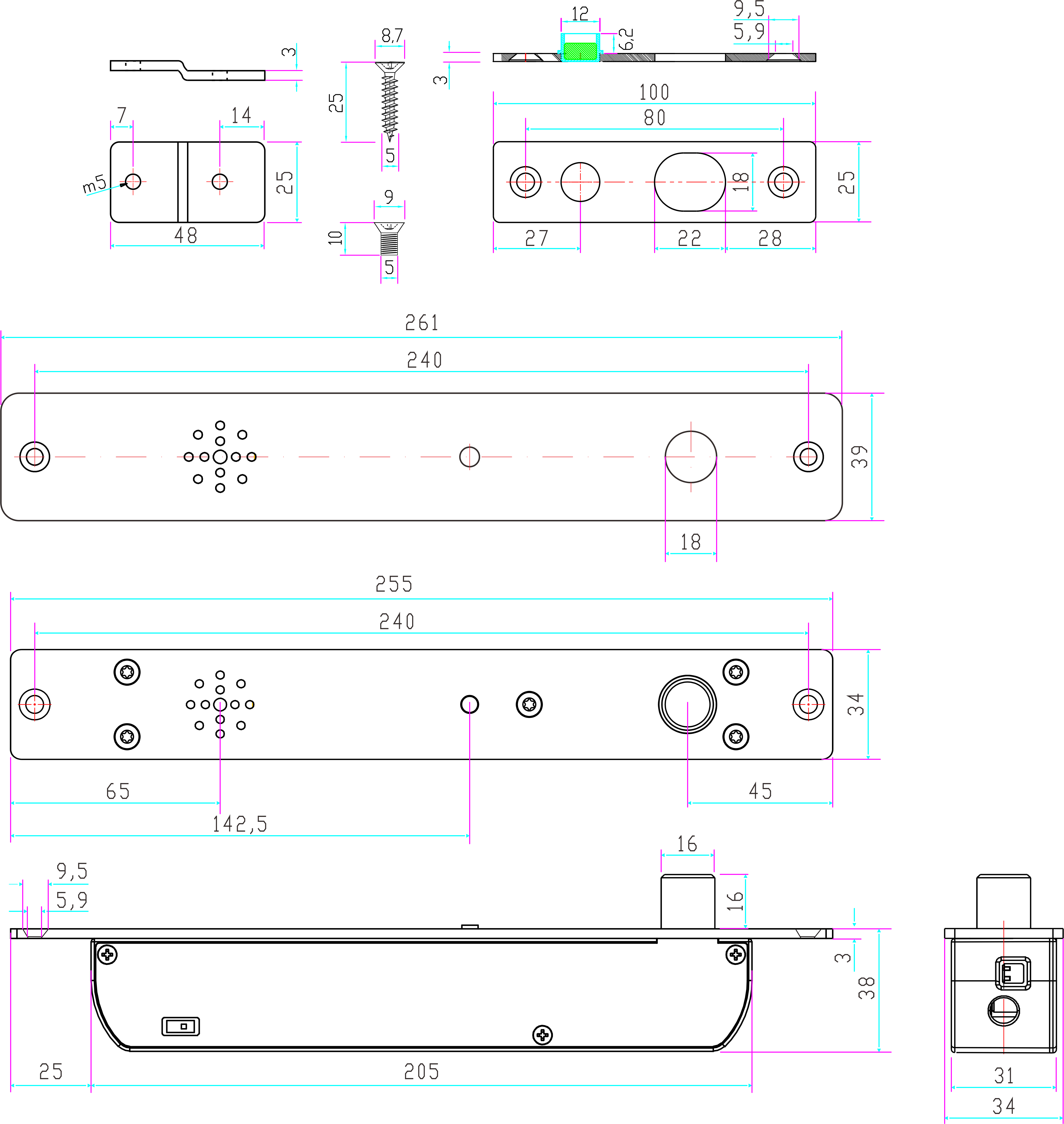 | Wymiary elektrozamka | 255 x 34 x 38 mm |