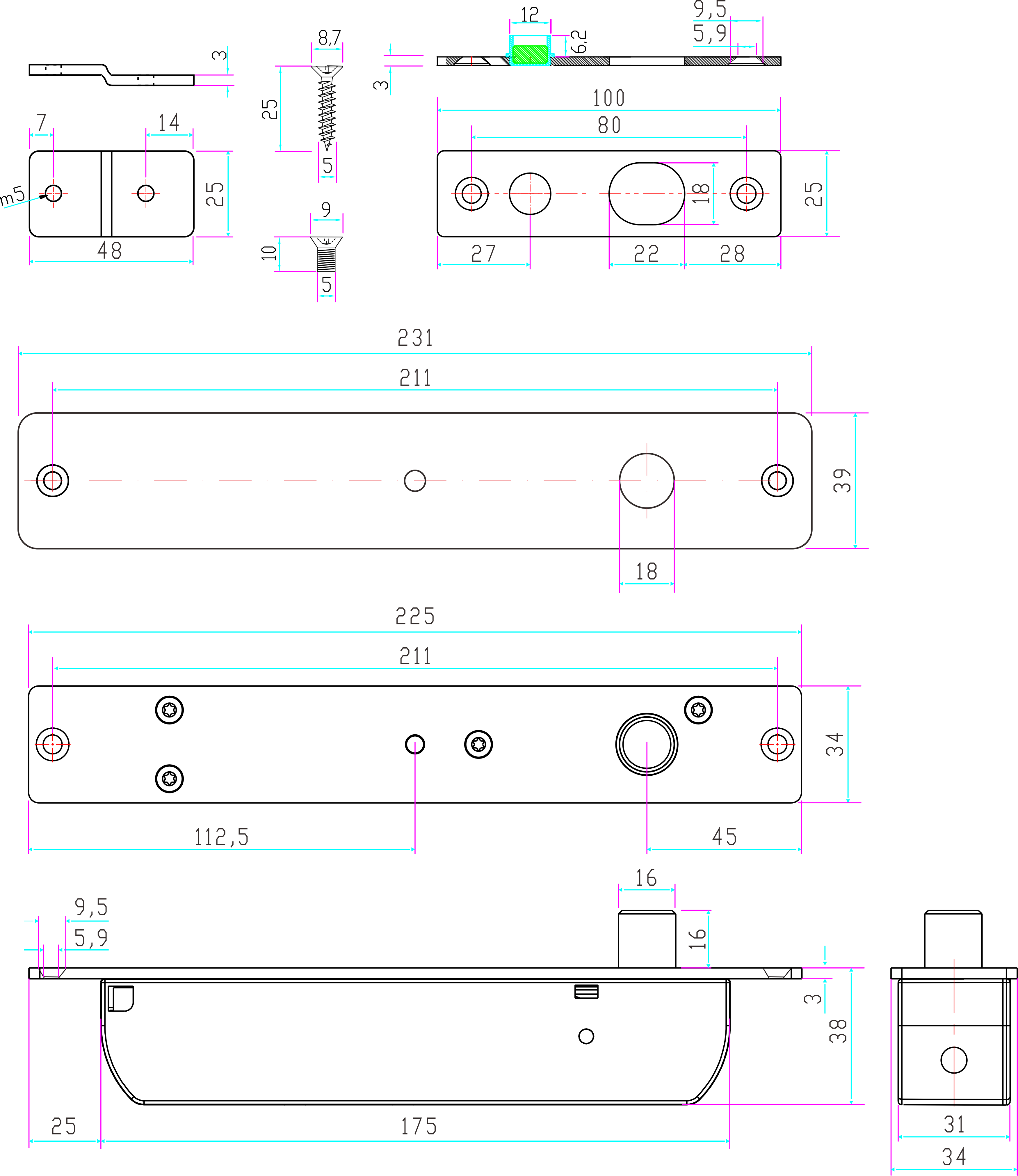 | Wymiary elektrozamka | 225 x 34 x 38 mm |