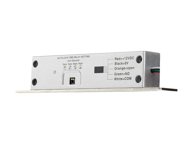 Elektrozamek ma możliwość ustawienia opóźnienia czasowego po którym elektrozamek zarygluje drzwi. Czas ten można ustawić na mikroprzełącznikach na obudowie elektrozamka. Możliwe ustawienia: 0 / 3 / 6 / 9 sekund zwłoki po podaniu sygnału sterującego otwarcie drzwi.