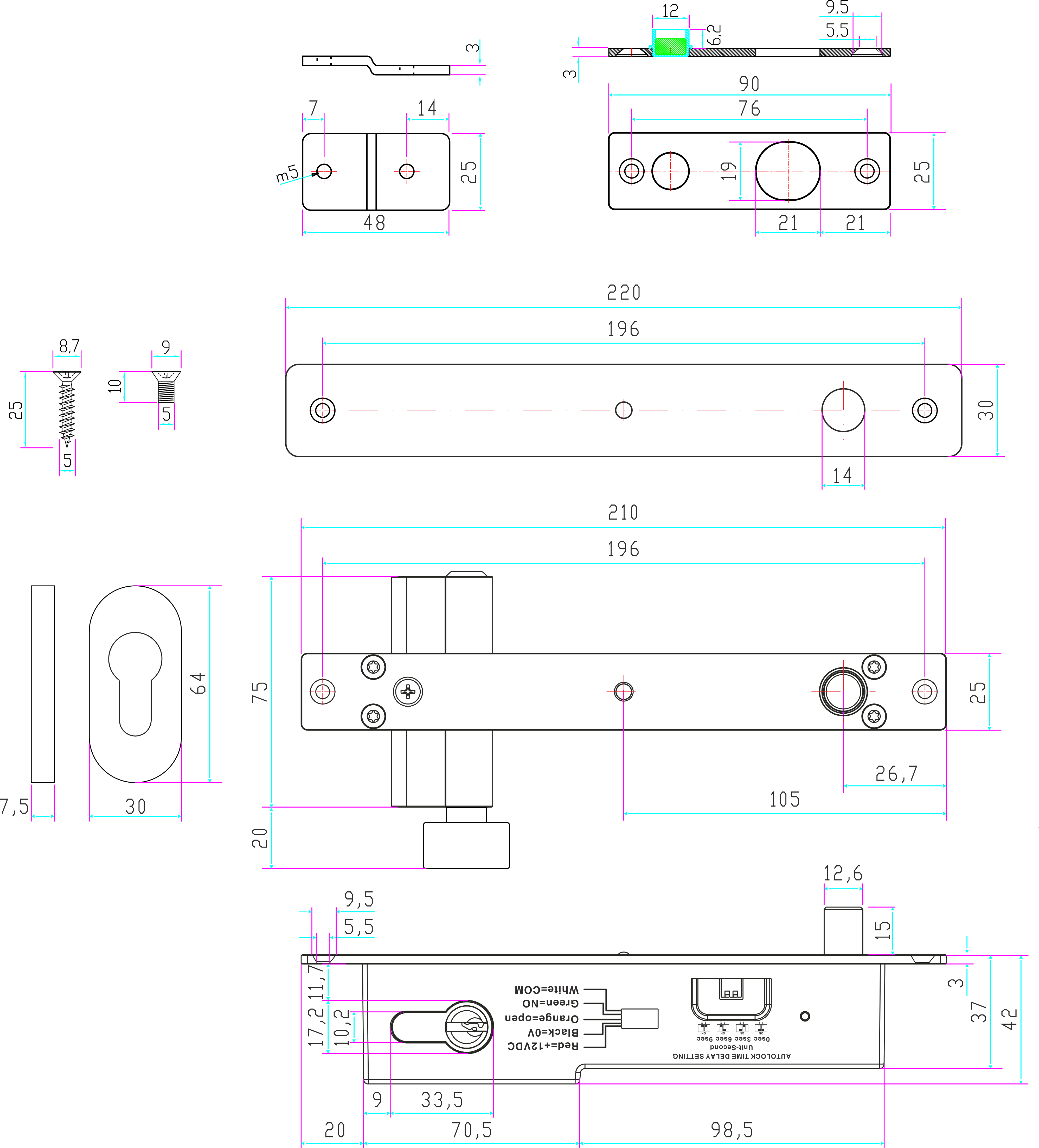 | Wymiary elektrozamka | 210 x 25 x 42 mm |