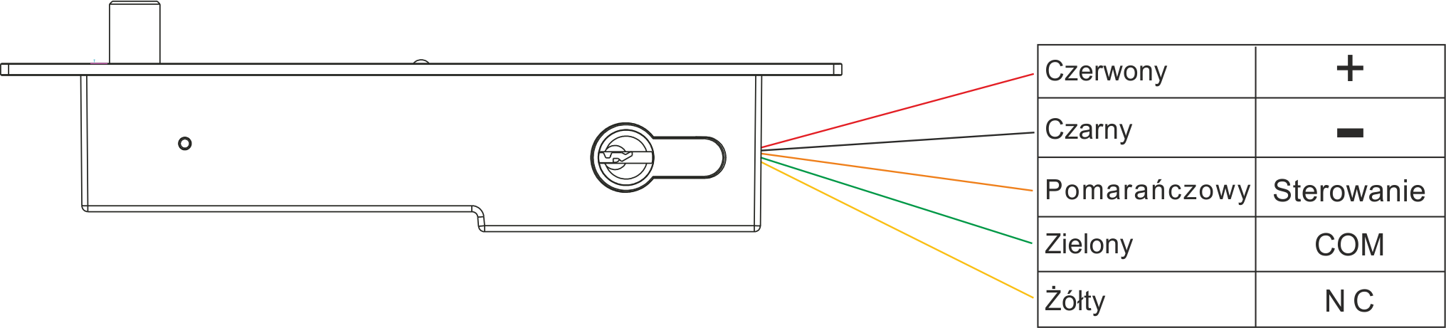 | Sygnalizacja stanu drzwi | Tak (styk NO, obciążalność 200mA@24VDC) |