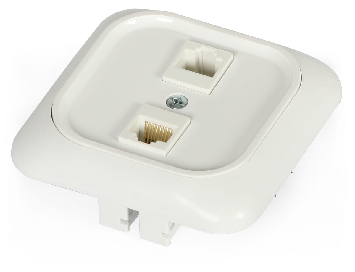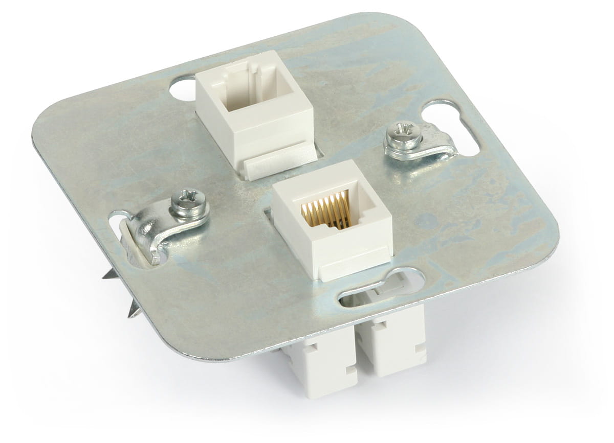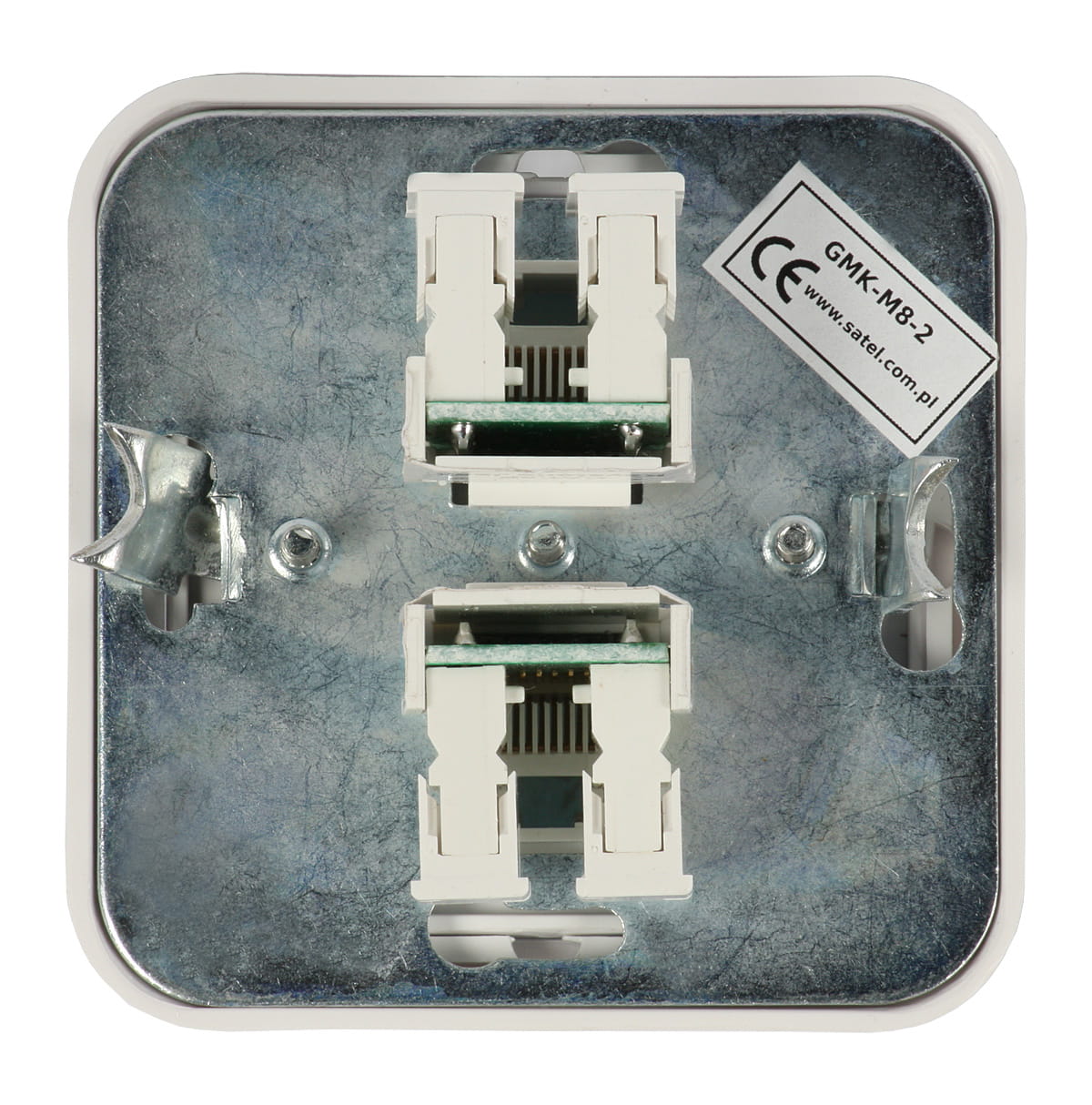 Gniazdo GMK-M8-2 komputerowe podwójne wyposażone w nieekranowane gniazdo RJ-45(8p8c) typu keystone spełniające wymagania kategorii 5E w instalacjach zgodnych z ANSI/TIA/EIA 568 kat.5e oraz ISO/IEC 11801 i EN 50173 klasy D. Złącza szczelinowe typu LSA zaciskane od góry posiadają kolorowe kodowanie ułatwiające prawidłową instalację okablowania w sekwencjach 568A lub 568B.