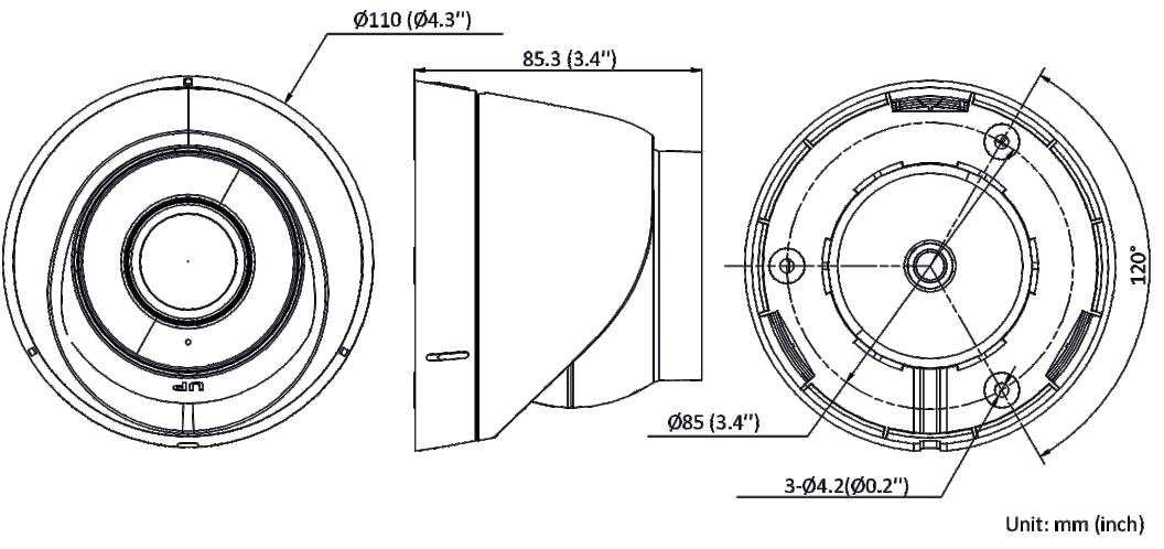 | Wymiary kamery: | Ø110 mm × 85.3 mm (Ø4.3" × 3.4") |