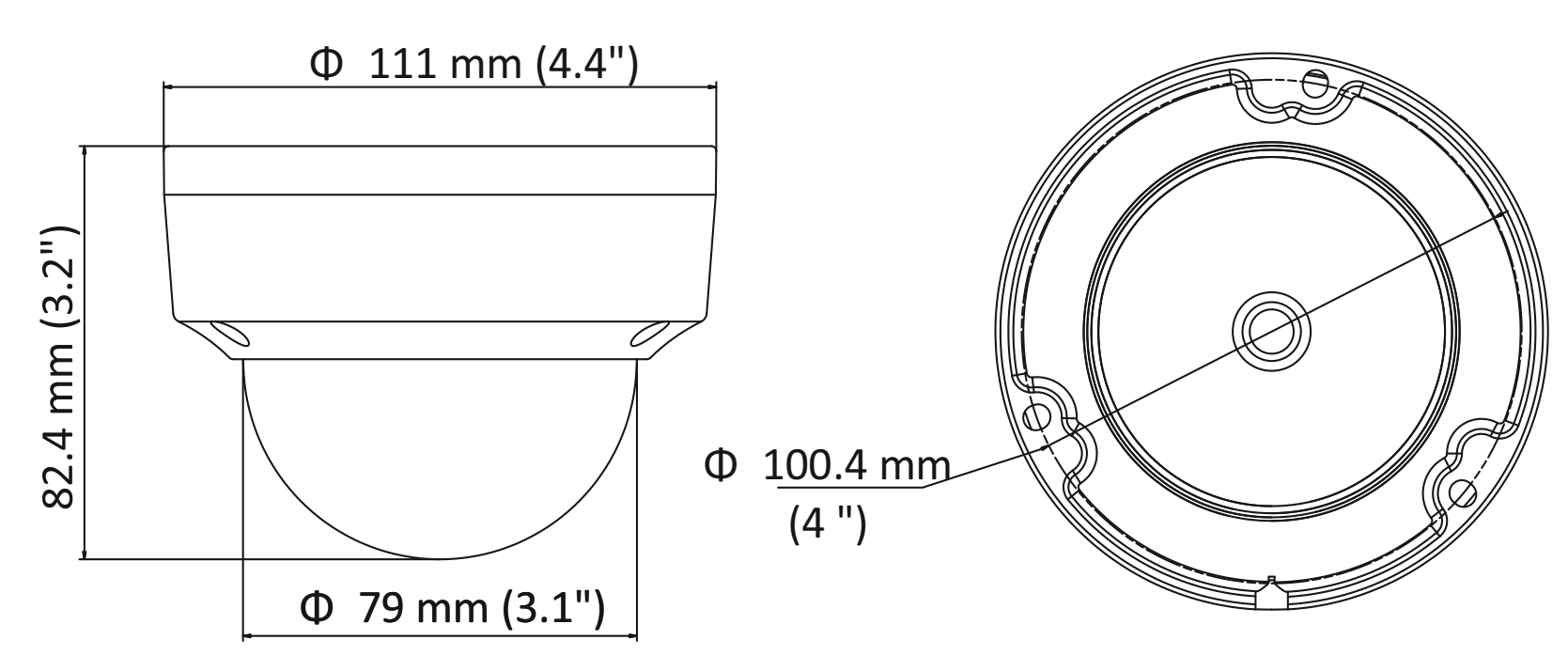 | Wymiary kamery: | Ø111 mm × 82.4 mm (Ø4.4" × 3.2") |