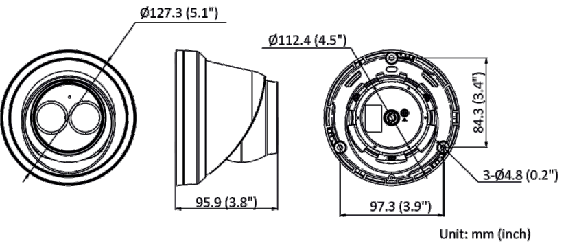| Wymiary kamery: | Ø127,3 mm × 95,9 mm (Ø5.01" × 3.78") |