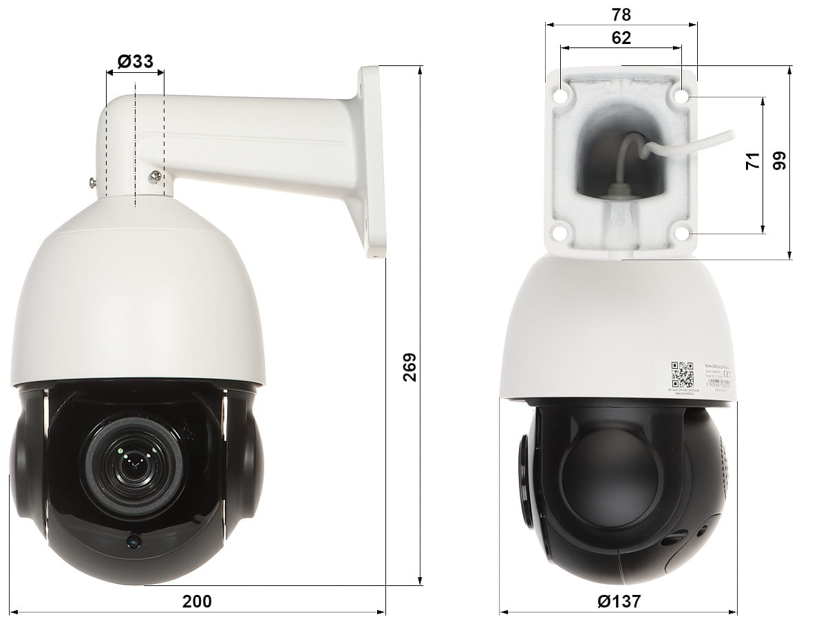 | Automatyczny oświetlacz IR: | Adaptacyjne dopasowanie mocy oświetlacza IR do zoomu obiektywu oraz jasności oświetlenia zewnętrznego |