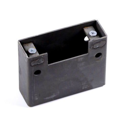Kaseta przystosowana do zaczepów R1. Wykonana z blachy o grubości 2 mm. W zestawie dwa wkręty M5x14 służące do przymocowania zaczepu. Powłoka stanowi dobre przygotowanie do nanoszenia farb, zwłaszcza proszkowych lub cynkowania.