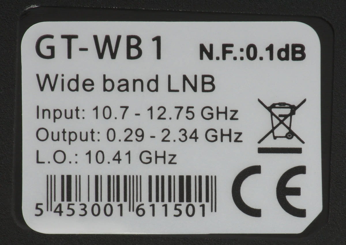 LNB GT-WB1 to konwerter satelitarny stosowany w instalacjach multiswitchowych działających w technologii Wide Band. GT-WB1 oparty jest na pojedynczym lokalnym oscylatorze 10,41 GHz zapewniającym znakomitą wydajność w całym zakresie częstotliwości 290...2340 MHz. W odróżnieniu od standardowych konwerterów typu Quatro posiada dwa wyjścia sygnału (polaryzacja H/polaryzacja V). Instalacja oparta o jednego satelitę wymaga doprowadzenia tylko dwóch przewodów satelitarnych od LNB do multiswitcha. GT-WB1 współpracuje z multiswitchem SRM522 TERRA.