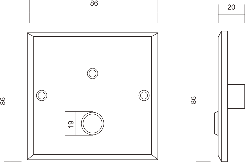 - Wymiary: 86 x 86 x 9 mm (puszka: 44 x 50 x 30 mm)