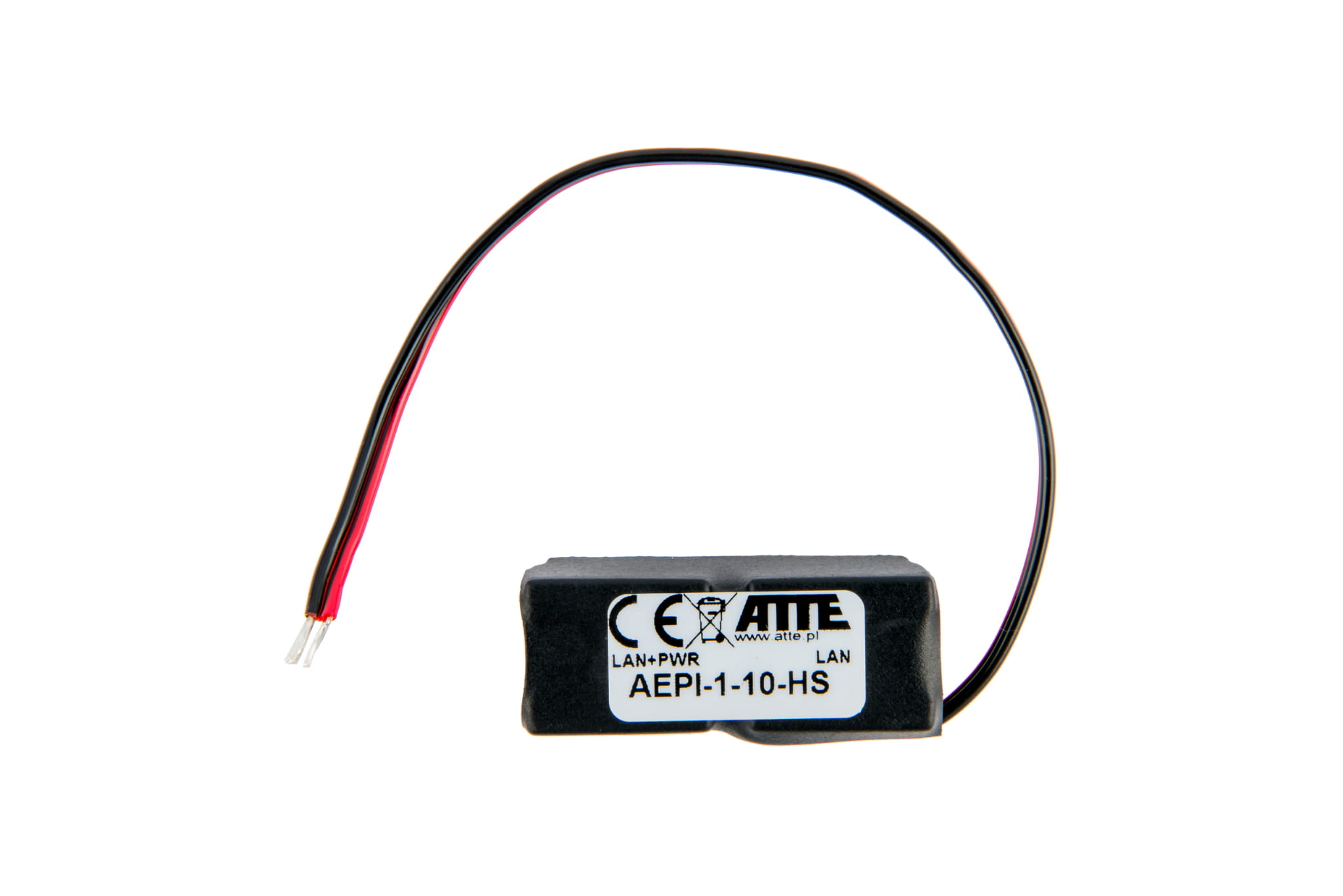 Moduł dystrybucji zasilania po skrętce UTP, Fast Ethernet 10/100 Mbps + PoE PASSIVE, 1 kanał, złącza RJ45/RJ45 + przewody, typu AEPI-1-10-HS.