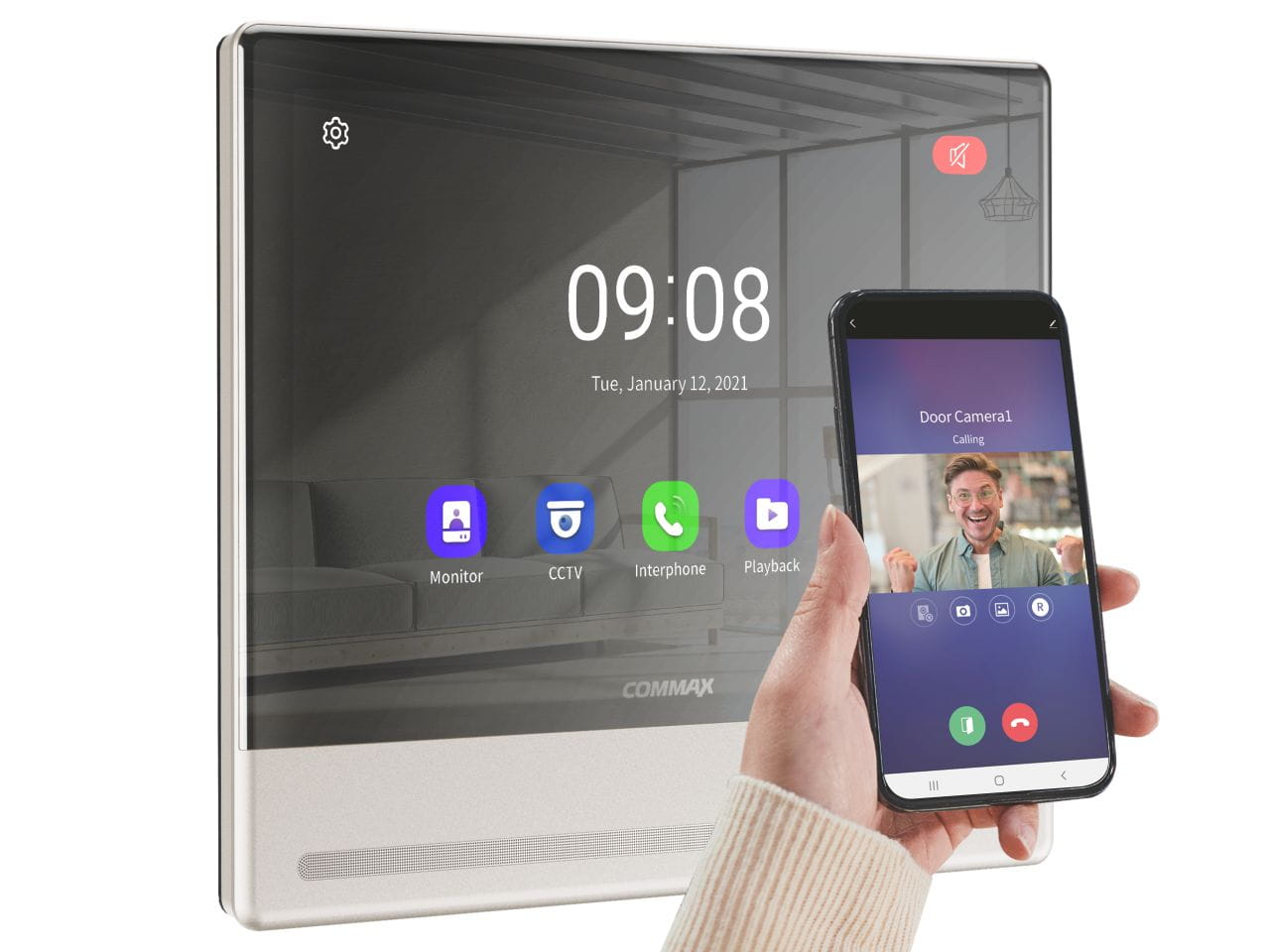 Monitor posiada wbudowaną kartę WiFi umożliwiającą przekazanie połączenia do urządzenia mobilnego (np. smartfona) wyposażonego w system Android lub iOS. Darmowa aplikacja COMMAX Hey Call pozwala na odbieranie połączeń, rozmowę audio/wideo i otwarcie wejścia. Użytkownik nie musi w tym czasie znajdować się w domu - wystarczy, że posiada jakiekolwiek połączenie z internetem (inne WiFi, LTE), system przekieruje połączenie wykorzystując sieć internetową. W każdym momencie można również wywołać obraz z dowolnej kamery podłączonej do monitora oraz zwolnić wejście.