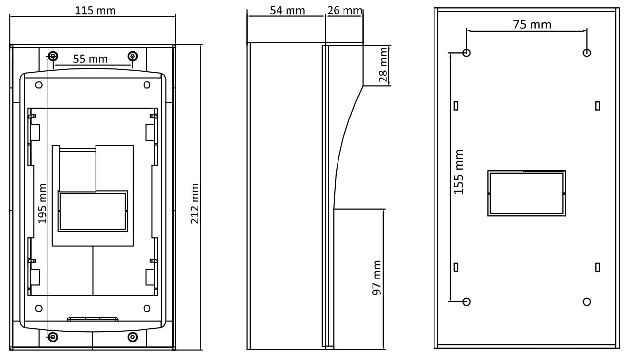 Obudowa natynkowa z osłoną deszczową dedykowana jest do serii urządzeń DS-KV8X02-IM. Osłona deszczowa jest osobną częścią obudowy.