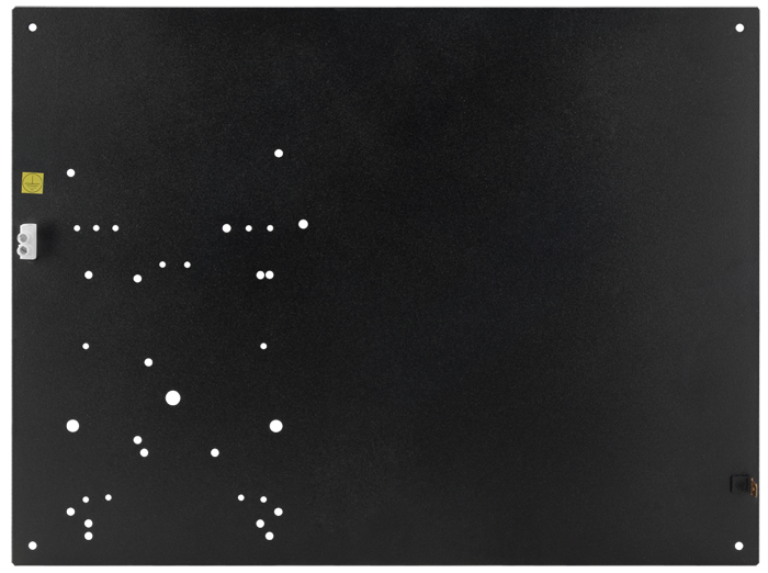 Na blasze montażowej (poziom I) znajduje się otworowanie pod transformatory serii TOR/TRP/TRZ i zasilacze do zabudowy serii PS/PSB/PSBOC firmy Pulsar. Na uchylnej blasze montażowej (poziom II) przewidziano uniwersalne otworowanie pod centrale i moduły rozszerzeń firm: DSC, PARADOX, RISCO, SATEL, PYRONIX, TEXECOM, TELMOR, ROGER, EBS.