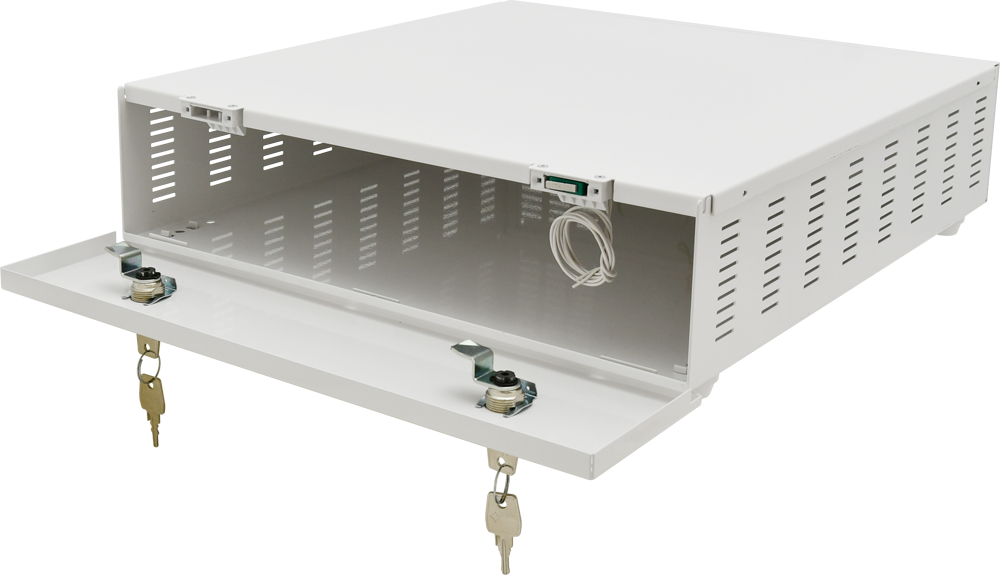 Konstrukcja obudowy dostosowana do wymagań z zakresu ochrony danych osobowych (RODO), które muszą być chronione i bezpiecznie przechowywane. Obudowa służy do zabezpieczenia rejestratora przed niepowołanym dostępem lub kradzieżą. Wykonana jest z blachy o grubości 1mm. Na wyposażeniu dwa zamki (różny kod), do każdego zamka dwa klucze w zestawie oraz tamper otwarcia obudowy i oderwania od ściany.