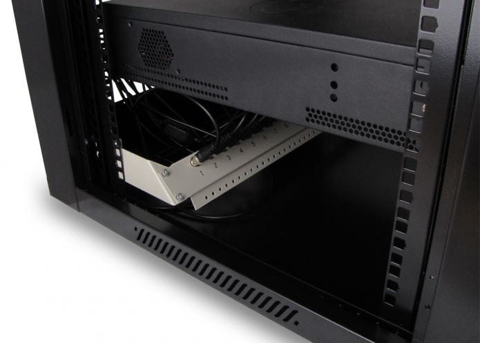 zintegrowany z konwerterem UTP na skrętkę oraz dystrybutorem zasilania oraz