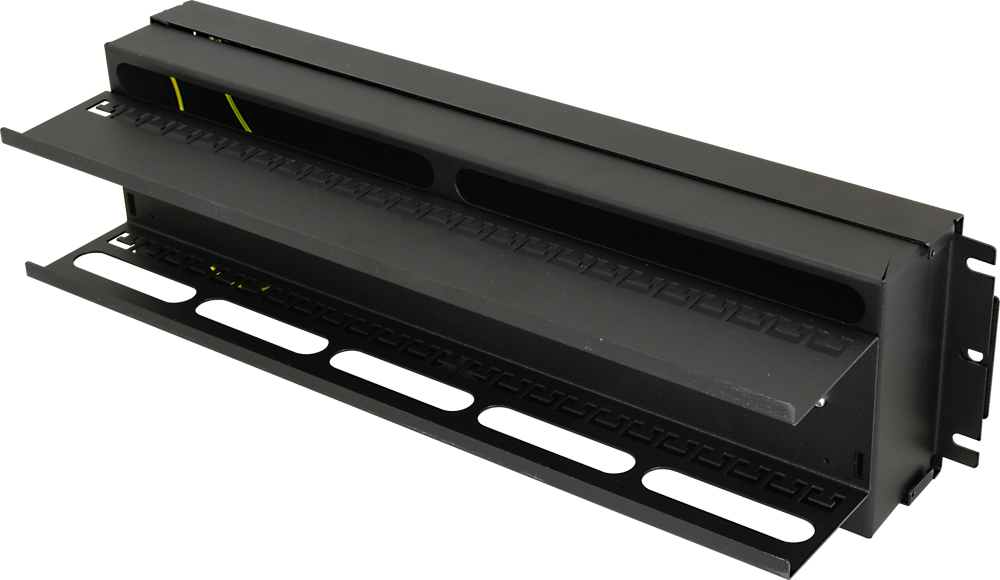 Panel dystrybucji napięć przeznaczony jest do zamontowania bezpieczników elektrycznych typu S w szafie RACK 19". Do obudowy można wstawić maksymalnie 24 bezpieczniki o szerokości 1 S.