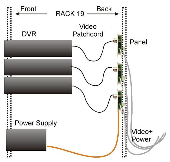 wyprowadzany jest za pomocą patchcordów BNC do urządzeń odbiorczych, takich jak
