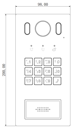 Jednorodzinny panel zewnętrzny IP. Montaż natynkowy lub podtynkowy, za pomocą dedykowanej obudowy, dostępnej osobno. Front wykonany ze stopu aluminium, obiektyw 2 mm, kamera 720p z przetwornikiem CMOS 1/2.9" mm, możliwość zasilania z PoE (802.3af), wbudowany zamek kodowy obsługujący do 10 6-cyfrowych kodów otwarcia drzwi oraz czytnik kart Mifare 13.56 MHz. Dodatkowe diody informujące o stanie systemu: wywołanie, rozmowa, otwarcie drzwi.