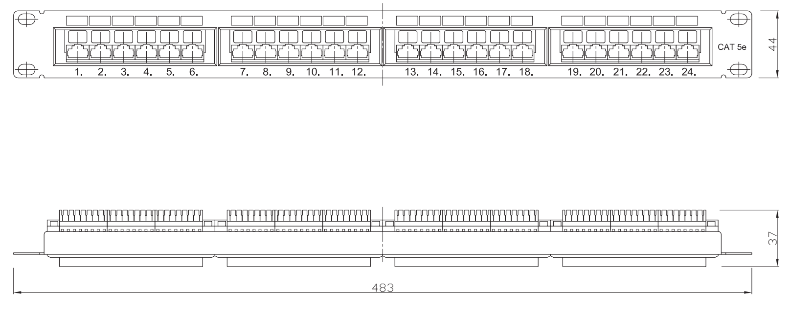 | Nazwa | Patch Panel 24 porty RJ-45 kat. 5e (kąt 45 stopni) | |