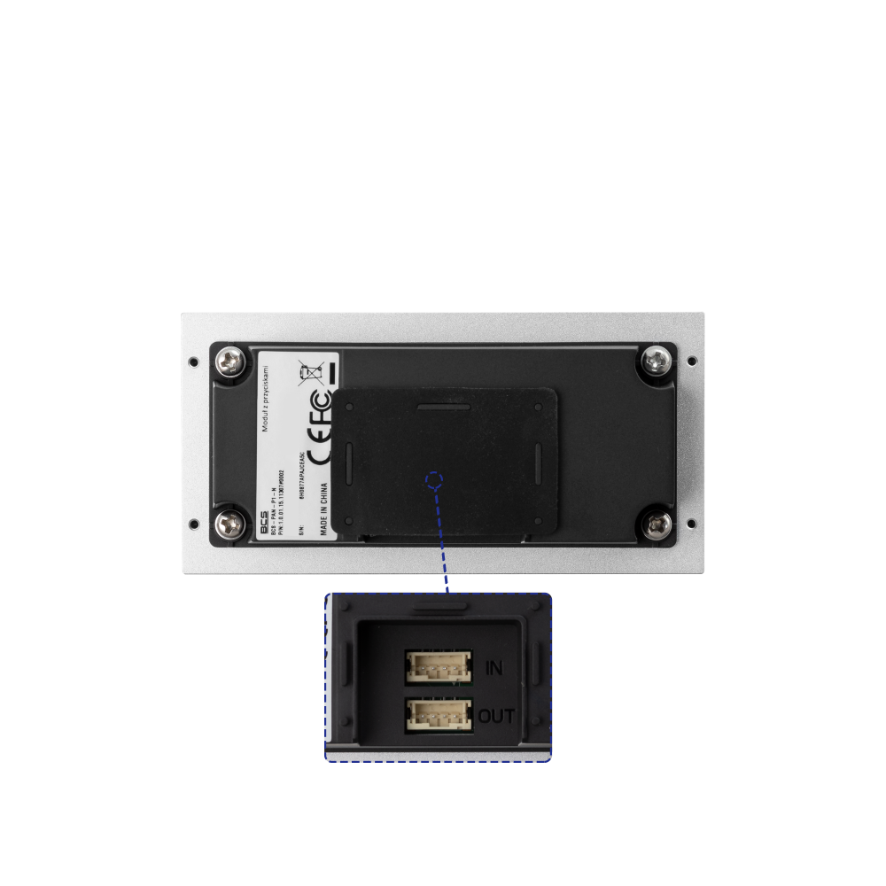 Pojedynczy moduł z przyciskiem 1 połączenia dla nowego systemu modułowego IP BCS. Umożliwia to zwiększenie liczby obsługiwanych mieszkań w systemie. Możliwość przypisania dowolnego kodu wywoławczego (numeru mieszkania) do każdego przycisku niezależnie. Przód wykonany jest z aluminium. Przeznaczony do montażu w dwóch lub trzech ramach modułów BCS-RA2-N i BCS-RA3-N. Zasilanie i transmisja danych z modułu kamery BCS-PAN-KAM-N przy użyciu taśmy modułowej dołączonej do ramy.