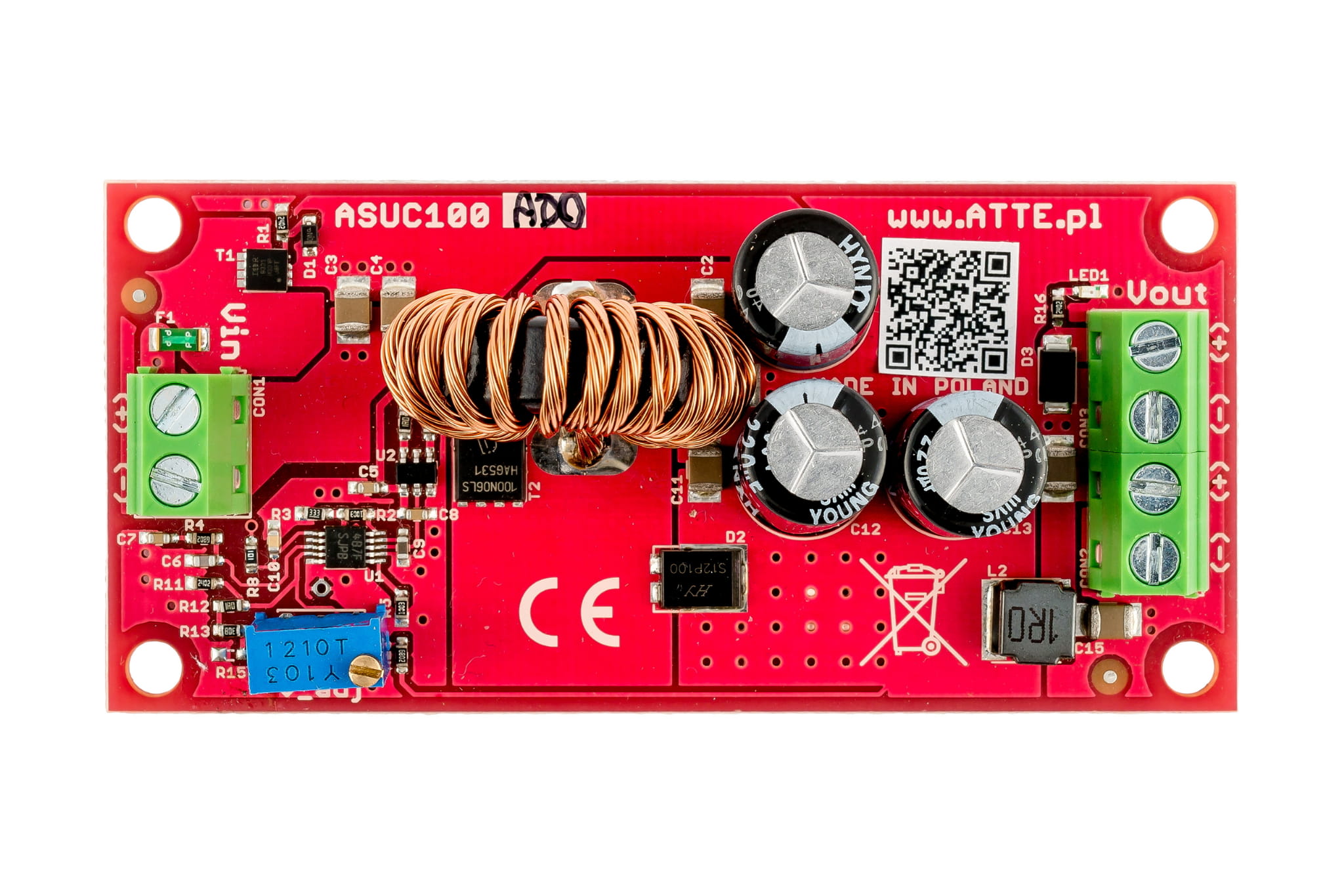 Przetwornica DC/DC, podnosząca napięcie, nieizolowana, Vin 10V...30VDC, Vout 12...48VDC, Pout 100W, moduł do zabudowy, typu ASUC-100-AD0-OF