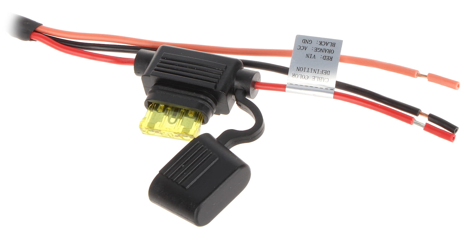 Przewód do zasilania rejestratora mobilnego bezpośrednio z akumulatora pojazdu.