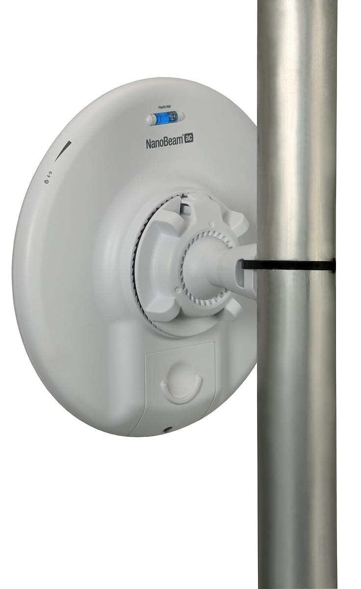 Urządzenie jest bardzo łatwe w montażu. Wykorzystanie przegubu kulowego pozwala na ustawianie anteny pod wieloma kątami. Do montażu na słupie nie potrzeba żadnych śrub - wystarczy opaska zaciskowa.
