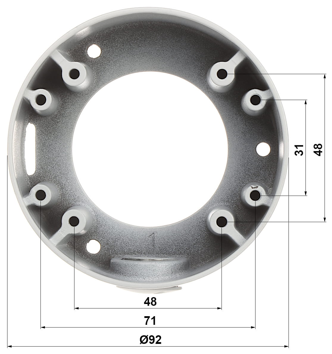 Można montować na nim kamery wandaloodporne. Posiada bardzo przydatną możliwość ukrycia kabli i złącz wychodzących z kamery.