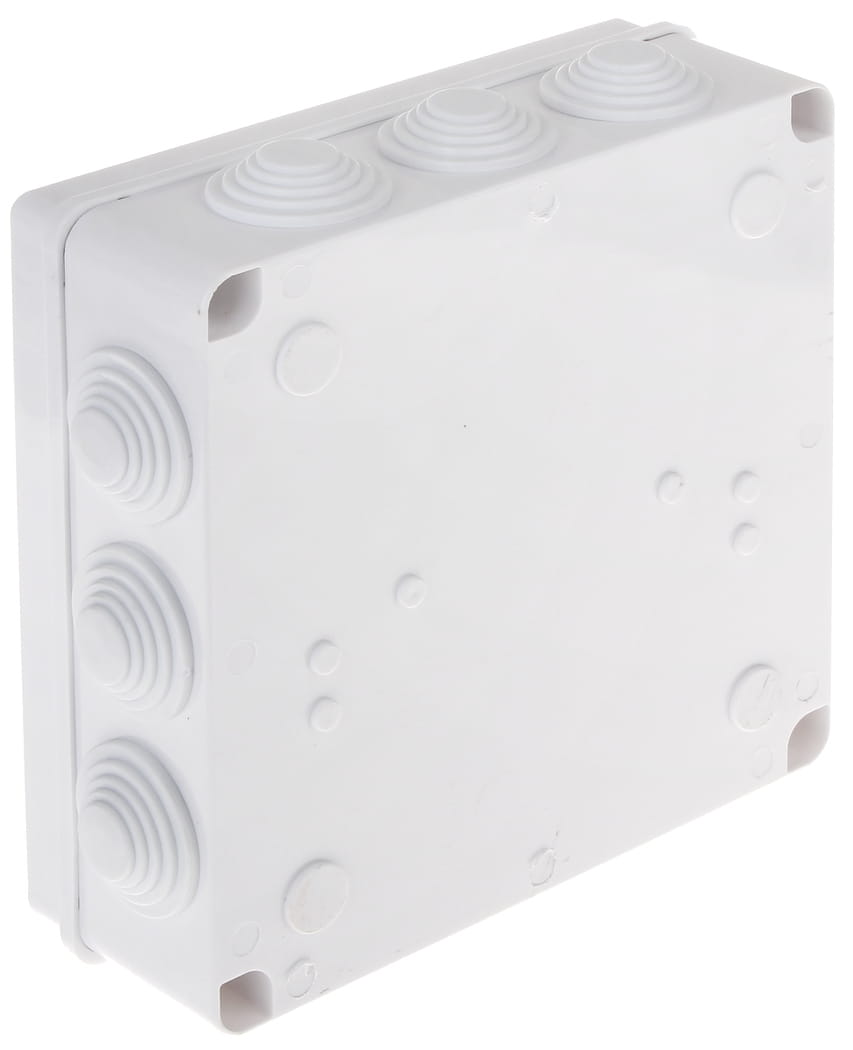 Puszka natynkowa, izolacyjna, odgałęźna 12 - wlotowa z dławnicami bezgwintowymi.