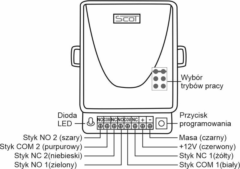 - 3 tryby pracy: czasowy 3s, bistabilny (w trybie tym działają oba przekaźniki jednocześnie), monostabilny