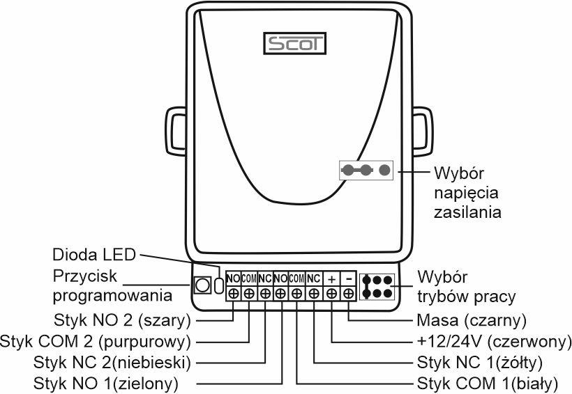 - 3 tryby pracy: czasowy 3s, bistabilny (w trybie tym działają oba przekaźniki jednocześnie), monostabilny