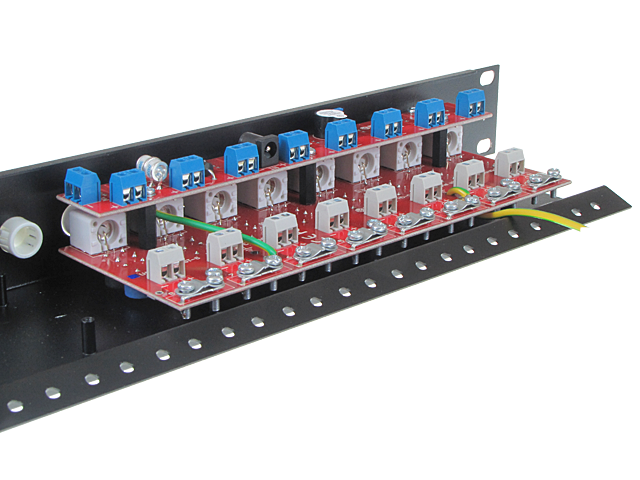 Dystrybutor zasilania - zamontowana płyta FPS dostarcza zasilanie indywidualne do poszczególnych kamer przez oddzielne bezpieczniki automatyczne. Chroni to system CCTV przed całkowitą neutralizacją, przez zwarcie linii zasilania w jednym z dowolnych z kanałów. Stan zasilania poszczególnych kanałów sygnalizowany jest przez diody LED a w momencie załączenia zwarcie dodatkowo załączany jest sygnalizacja dźwiękowa. Stworzony w ten sposób centralny system zasilania może być łatwo wyposażony w układ awaryjnego zasilania w oparciu o zasilacz buforowy. Zasilacz stosowany z płytą FPS powinien mieć zapas wydajności prądowej minimum 50% poboru nominalnego, aby w momencie wystąpienia zwarcia nie powodowało to jego wyłączania się (dotyczy zasilaczy impulsowych).