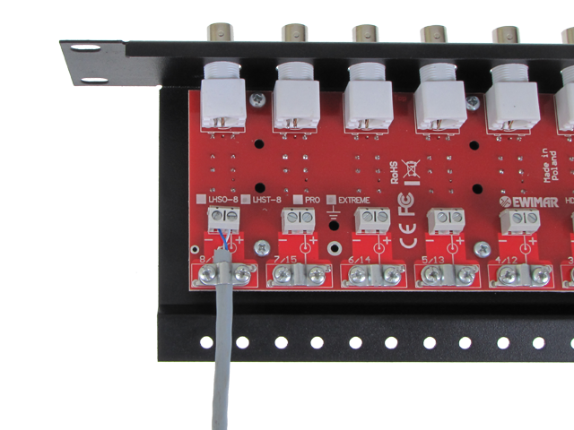 Patch panel połączeniowy - wszystkie sygnały Video przechodzące przez LHST, wyprowadzone są za pomocą wysokiej jakości gniazd BNC. Połączenia z urządzeniami odbiorczymi (rejestratorami DVR) wykonywane są za pomocą patch-cordów BNC, co umożliwia łatwe przełączanie źródła sygnału pomiędzy poszczególnymi kanałami Video. Aby zapewnić trwałe i stabilne połączenia, zalecane jest używanie patch-cordów wysokiej jakości - dostępne również w ofercie Ewimar.