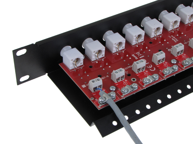 Organizer przewodów - ułatwia podłączanie przewodów koncentrycznych bez konieczności zaciskania złącz BNC oraz pozwala na mocne i trwałe ich przymocowanie, co chroni je przed utratą połączenia lub przypadkowym wyrwaniem.