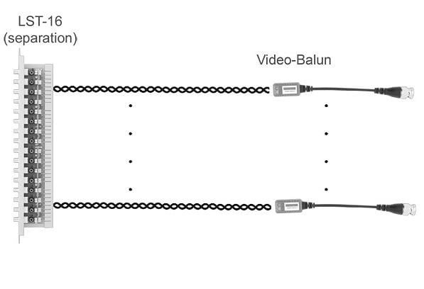 LST-8R to 8-kanałowy pasywny konwerter UTP, zintegrowany z